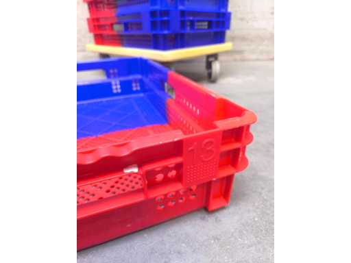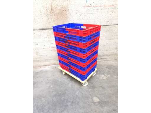 (X1) 250kg transport trolley with 10 blue and red stackable and built-in boxes / size 60x40cm - depth 13cm