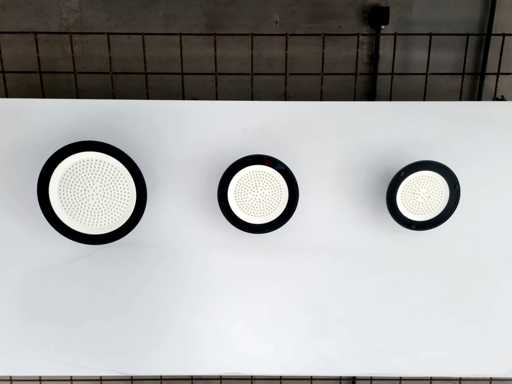 luminous flux 21000 lumens SMD LED, neutral white 4000K, waterproof IP65, Linear IC driver included, flicker free, beam angle 90°, product color sand black, diam Ø 397 x 29mm, material aluminum and glass, mounting set not included, lifespan 30000 hours, voltage 200-240V, it can show in watts and lumens 5% difference, sku 1028