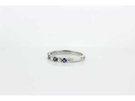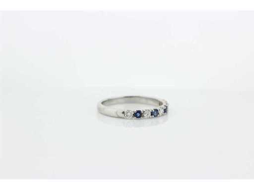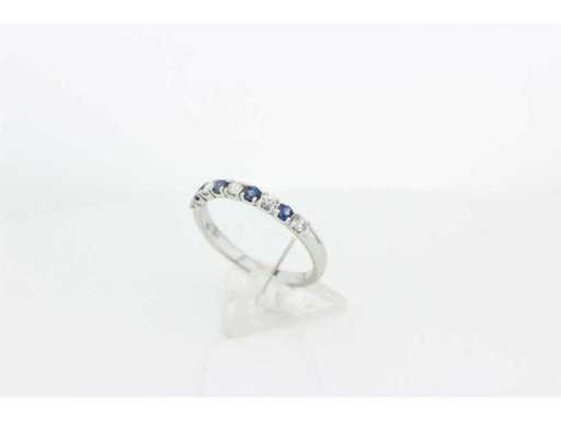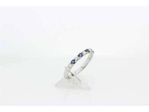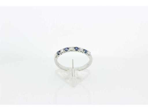 New and unused.14 carat white gold half alliance set with 4 brilliant cut natural sapphires and 5 brilliant cut diamonds. Includes a ring box and an appraisal report with an insurance value of €975,-- issued by a qualified appraiser. Gemstone: 4 natural sapphires Gemstone: 5 natural brilliants Cut: brilliant cut Weight: 0.31 crt./0.25 crt Color: Blue/G Purity: VS