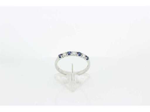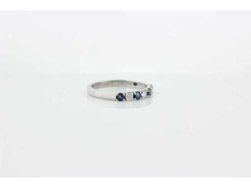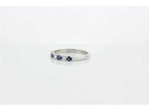 New and unused.14 carat white gold half alliance set with 4 brilliant cut natural sapphires and 3 brilliant cut diamonds. Includes a ring box and an appraisal report with an insurance value of € 875,-- issued by a qualified appraiser. Gemstone: 4 natural sapphires Gemstone: 3 natural brilliants