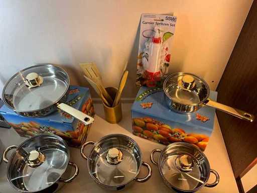 12 piece GSW pot set + various kitchen utensils
