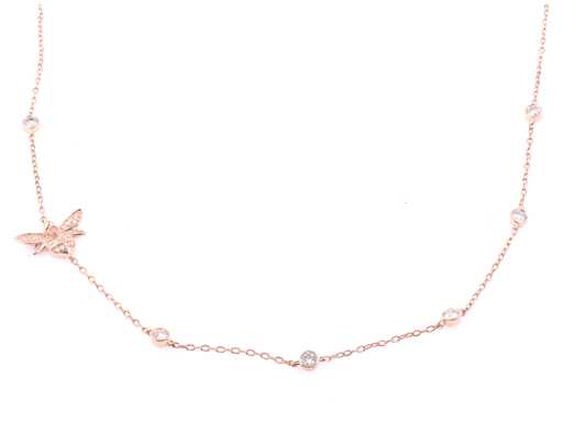 14 KT Pink Gold Necklace With Pendant With Natural Diamonds