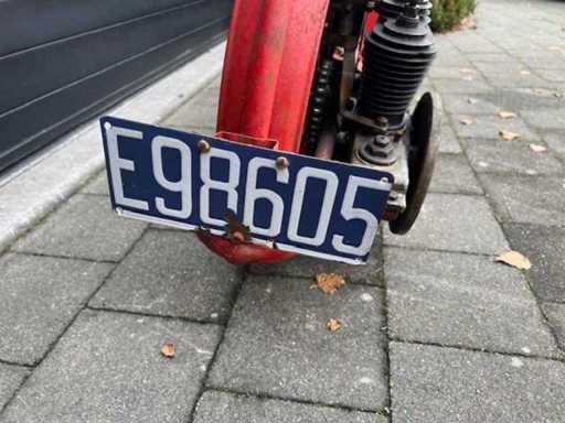 This motorcycle/scooter, called Motorette by most brands, still has the original Belgian Engelbert tires, Belgian number plate and original tax plate from 1947.