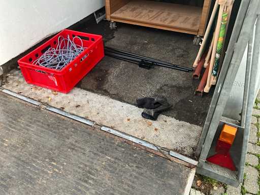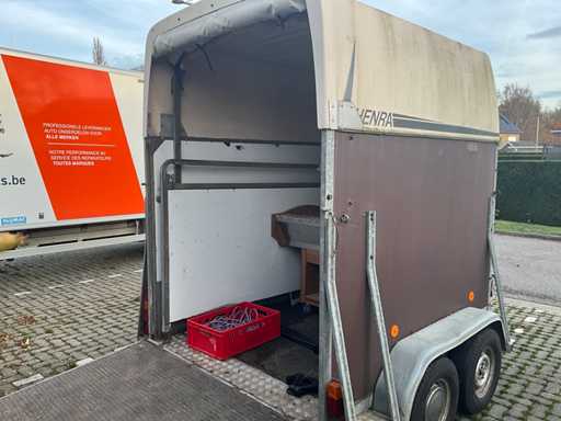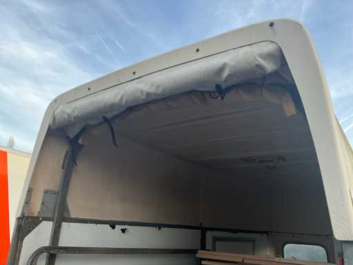Equipped with tailgate at the rear with roller blind, +door left front, overrun brake, support wheel, wooden sides + plastic roof, WITHOUT DISSELSLOT!