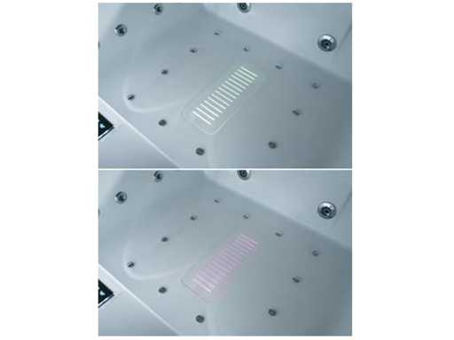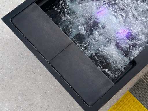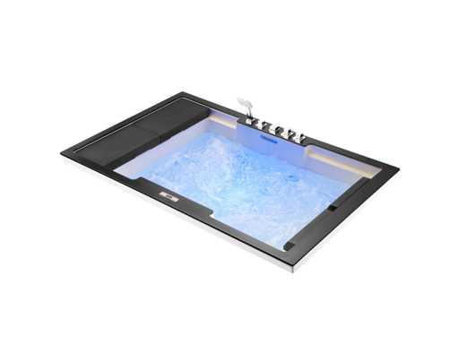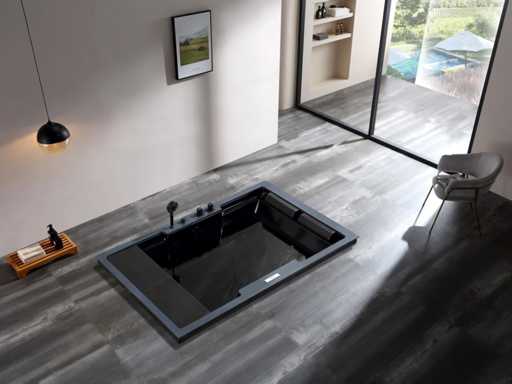 Color choice gloss black or gloss white inside with matte black top edge (color choice please pass on info@mawialux.nl), Drain pop-up with flexible water hose, Heating (2000 watts), Power 220v 3500 watts (with plug and play plug), 1.5hp hydro pump with 200watt air pump, total 24 jets of which 12 massage jets of which 4 large adjustable and 12 air jets, new in packaging, Equipped with Bluetooth with speakers, digital control panel, hand shower with faucet (matt black), integrated bath faucet, mixer to add strength and air to the jets, lighting with color therapy, 2 pillows and 2 seat cushions, chrome brass faucets, adjustable base and stainless steel, dry run protection