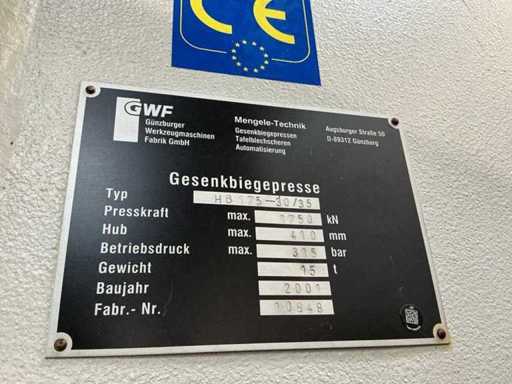 2001 GWF Mengele HB 175-30/35 Press brake
