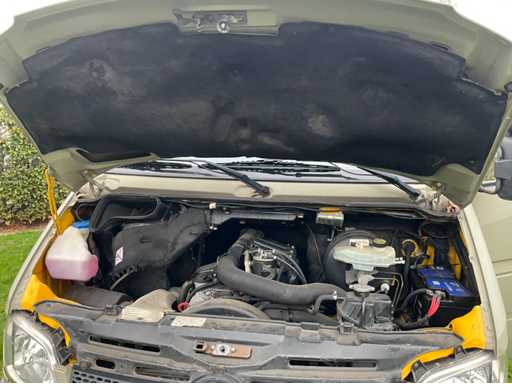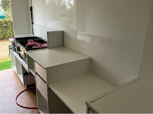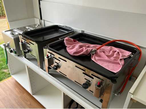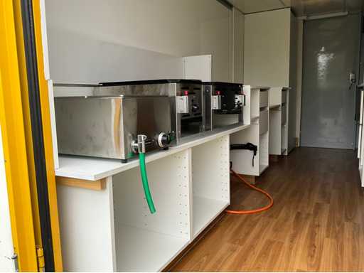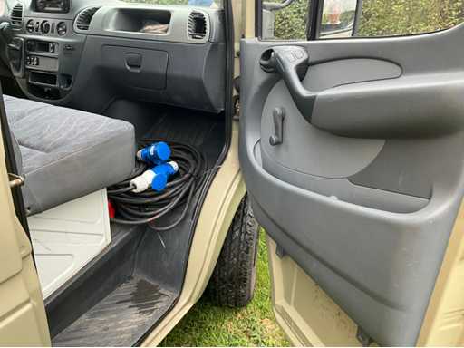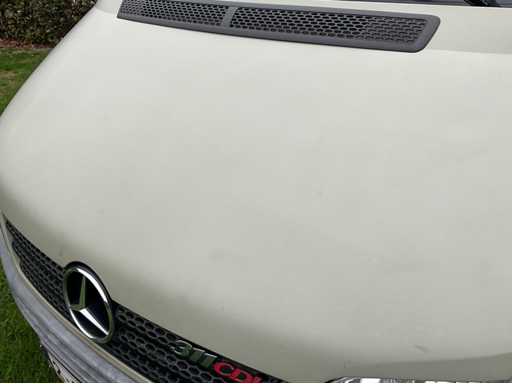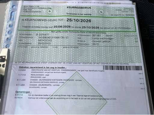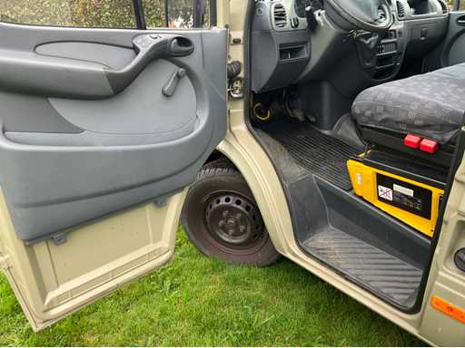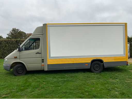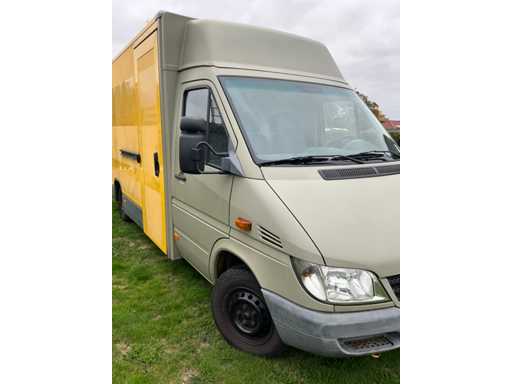 Solid Mercedes Sprinter 311 CDI light truck with Kögel body, currently equipped as a food truck - The car is equipped with a reliable 2.2 CDI diesel engine with automatic Sprintshift gearbox - The car drives, shifts and brakes correctly - Interior in neat condition, bodywork with some signs of wear and slight rust on the chassis (see photos) - Full paper package available - Body & Bodywork: Closed Kögel body, ideal for food truck, Market wagon or promotional car, Double rear doors with windows, Rear step in aluminium checker plate, Interior with new floor, white furniture and worktop, Various 230V sockets and cables included, Wall lighting and basic electrics available, space for plumbing - Paint shows signs of wear, light scratches and crack in the side (see photos) - Bottom edge and chassis show superficial rust - Technical condition: Engine starts and runs regularly, Sprintshift automatic gearbox shifts well, brakes and lights working, Chassis has superficial rust (typical for age), Interior with slight signs of wear, dashboard minor damage (see photo) VALID GREEN TECHNICAL INSPECTION UNTIL 25/10/2026 - Furnishing and equipment as a working mobile kitchen: Present and included: 2x Hendi gas baking plates (in good condition), 1x Hendi bain-marie / hot water bath with tap and drain hose, 1x Microwave oven (HighOne), Full-length worktop with white cabinets at the bottom, Storage cupboards and drawers (partly with adjustable shelves), Extra storage space at the back with lockable cupboard, Gas and electrical connections available (orange gas hose and cables included) = approved, Sockets along both walls, Electrical box with fuses and CEE connection outside, Laundry or sink area provided (water connection via hose set)