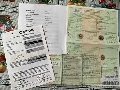 Vehicle documents: certificate of conformity, German registration certificate, customs import document