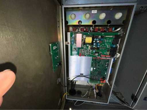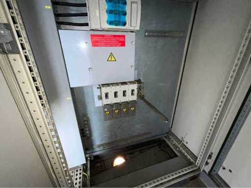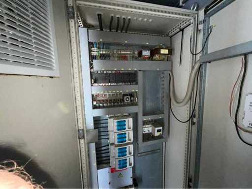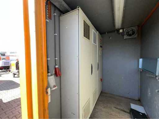 5 ft. container equipped with a PLC control system for managing two motors of 45 kW each, power connection 400 - 230 Volts; lighting; 1x entrance door; 1x double container door; twistlocks; forklift fork slots; working condition not verified;