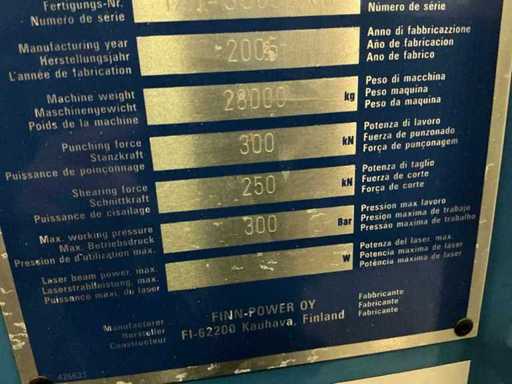 * Equipped with Finn Power CS30 plate storage & automatic destacking system