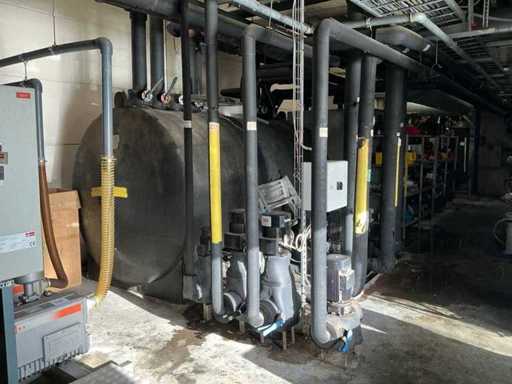 With dimensions approx. 180 x 300 x 200 cm. Complete with 7x Grundfos pump including types: MG132SC2, MG80B2, MG90LC2 and MG112MC2. and of which with switches Katko and Eaton. Volume: 7.5 m3 ! With the exception of lot no. 343 (hydro pumps) ! To be professionally dismantled by the buyer himself and to remove the surroundings via port opening ! Located on the 1st floor.