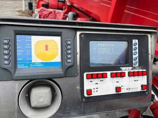 Equipped steered axle(3), Hilton aerial platform, own weight 24781kg, max mass 28000kg. , control of aerial work platform part defective, support legs working, no selfdrive for export
