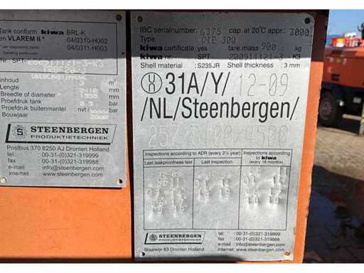 wall thickness 3 mm; capacity capacity 3000 liters; lid; lifting eyes; forklift fork slots; working condition not verified;