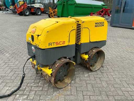 Equipped with: self-propelled, steerable rammer (vibratory roller), ideal for compaction of cohesive soils in trenches, foundations and road construction, equipped with the SmartControl system (infrared) for maximum safety, type: RT 82-SC-2, operating weight: 1,497 kg, impact force (centrifugal force): 34.2 kN (low) / 68.4 kN (high), vibration frequency: 4, travel speed: Max. 2.5 km/h (forward/reverse), climbing ability: 45% (with vibration) / 50% (without vibration), Dimensions & Transport: total length: 1.853 mm, total width: 820 mm (roll width), total height: 1.231 mm, roll diameter: 520 mm, ground clearance (min.): 197 mm.