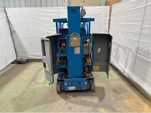 This aerial platform is in neat used condition and is FULLY FUNCTIONAL - EXCEPTIONALLY LOW HOURS: only 197 hours (well below the market average) - Due to the narrow construction width of ONLY 75 cm, the machine fits effortlessly through doorways and is perfect for use in warehouses, factory halls or shops - CHARGES EASILY via standard 230V socket - no special infrastructure required! - HIGHLY MANOEUVRABLE and lightweight (843 kg) - ideal for maintenance and installation work inside buildings - Thanks to the electric drive, the machine is quiet, clean and low maintenance - The GRC12 offers a stable working height of up to 5.45 meters and a platform capacity of 227 kg, ideal for one person with tools - can be FREE LOADED for transport