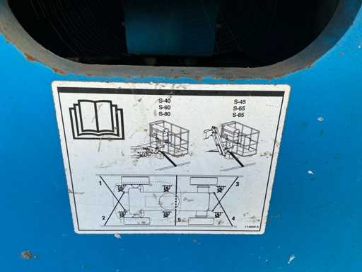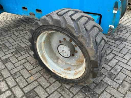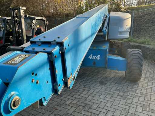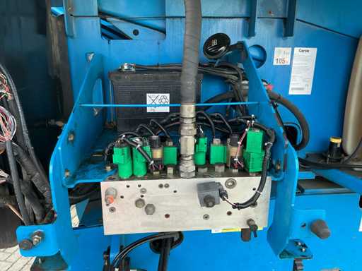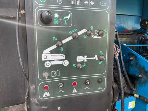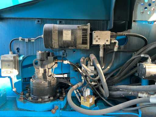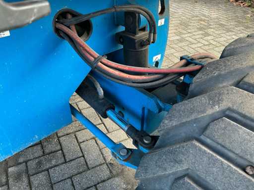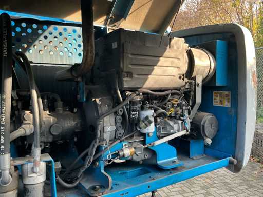 Equipped with: maximum working height (on tires) 21.81 m, horizontal reach maximum 17.10 m, platform length 0.91 m, platform width 2.44 m, lifting capacity 227 kg, platform rotation 160°, vertical boom rotation 135° (+78° / -57°), 12 V DC proportional, RT foam filled 355/55D 625, Deutz TD2011 L04i 4 cylinder turbo diesel 55 kW (74 hp), 4WD, 4WS, Hydraulic platform rotation, proportional joystick control, Control with thumb rocker, power cord to platform, tilt alarm, drop and travel alarms, hour meter, 360° continuous turntable rotation, two-speed wheel motors, 7 kVA hydraulic generator (240 V 50 Hz), muffler with diesel catalyst, 240 V power supply to platform.