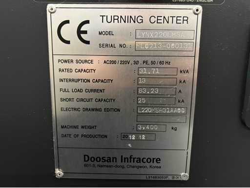 2012 Doosan Lynx 220 LMSA CNC lathe