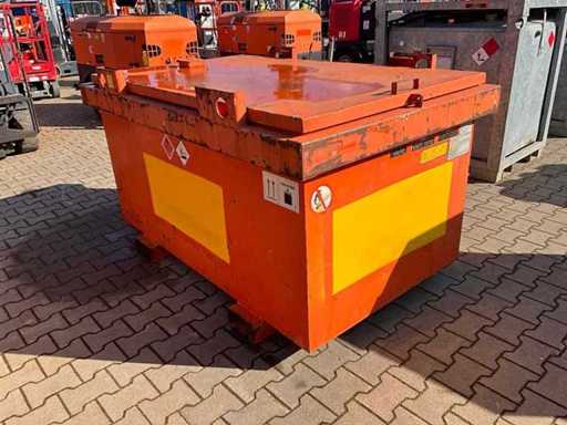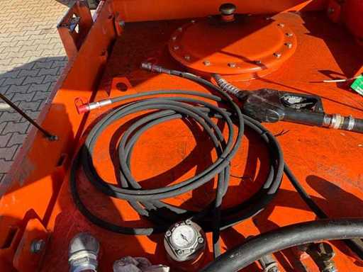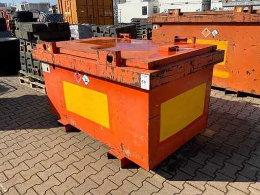 lid; connection couplings; electric pump; lifting eyes; forklift fork slots; working condition not verified;