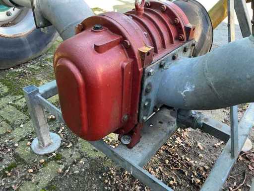 Consists of: PTO driven slurry pump with gearbox – 3-point version, 7" connection and 4" connection, drive: PTO shaft (540 rpm), max. Speed: 2.225 rpm, max. pressure: 340 bar, weight gearbox: 139 kg, equipped with PTO shaft with protective cover, galvanized suction and discharge pipes, flange and quick couplings, length: 2.20 meters, width: 1.40 meters, height: 1.40 meters, Battioni Pagani BR 120 rotary lobe pump (rotary lobe pump), capacity of 127m3/h, safety valve: 2