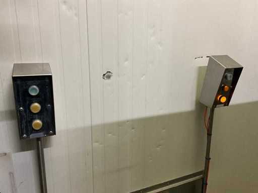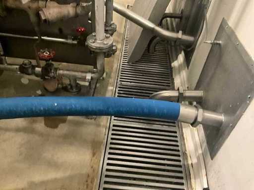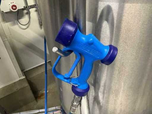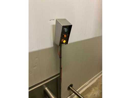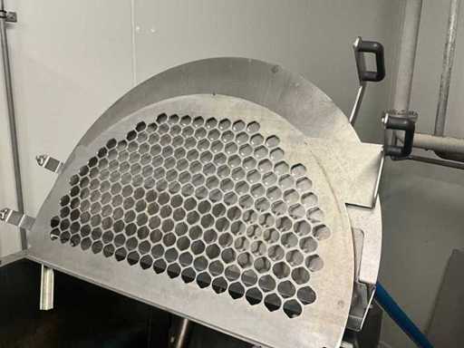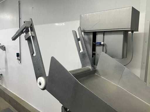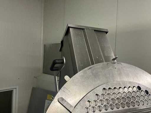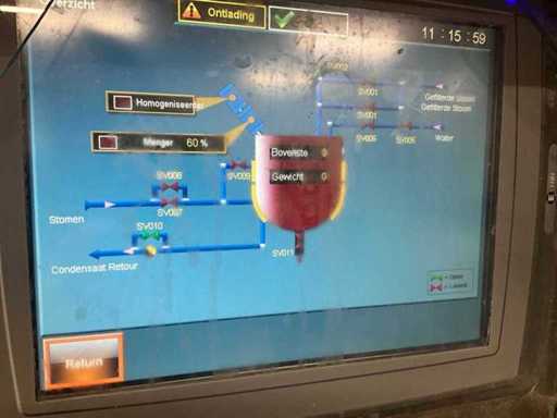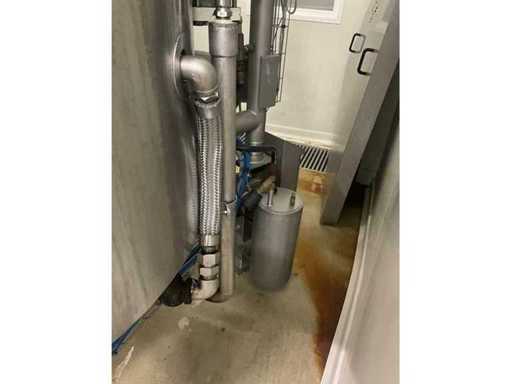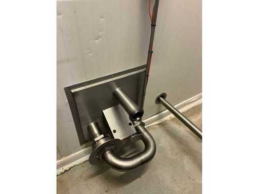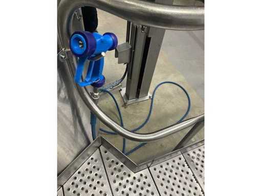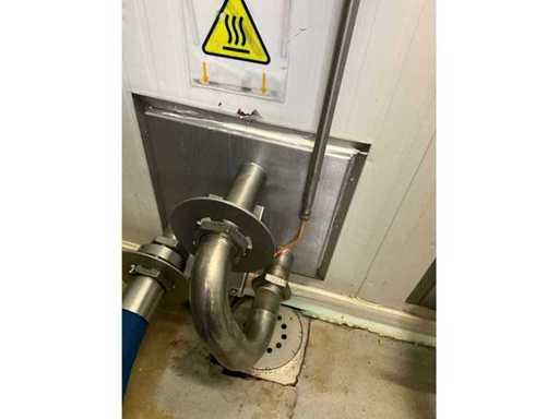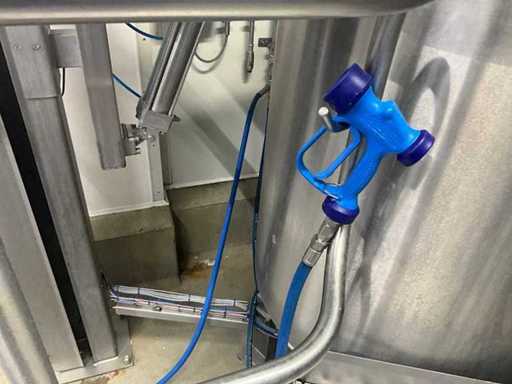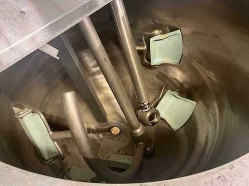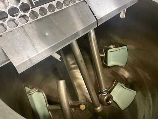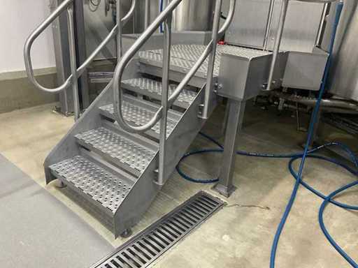 Food processing equipment consisting of 2 large cooking kettles, 2x column loader DCN L25 with feed element, 2 separate control cabinet and work platform with stairs with 4 steps, complete with 2 spray hoses RGB65.