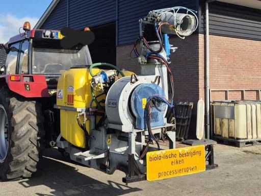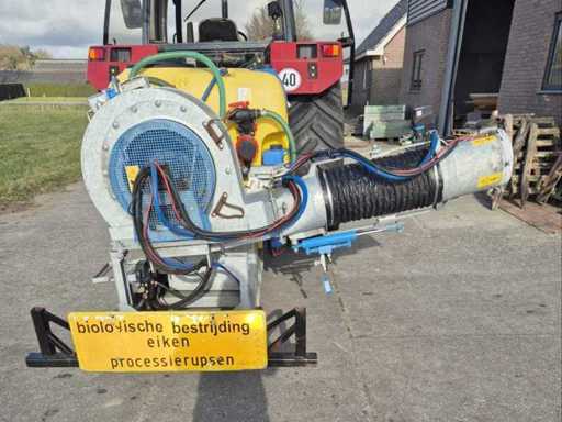 Year of construction 2014 * equipped with Arag spray control unit * 3-point attachment (PTO driven) * Electrostatic spray system * Tank capacity: ± 600 liters * Centrifugal pump: ± 160 – 180 l/min * Working pressure: approx. 1.5 bar * Fan capacity: up to 20,000 m³/h air displacement * Spraying range: up to ± 25–30 meters horizontally * equipped with pump LV40D * suitable for tree cultivation, agriculture and targeted control (e.g. oak processionary caterpillar).