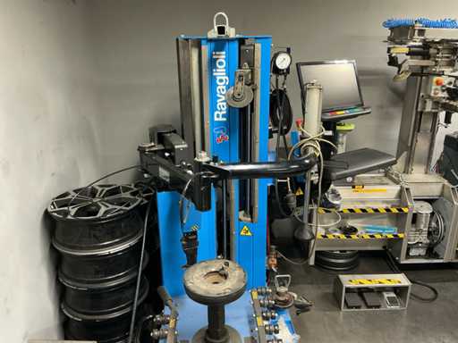 Technical Data – Ravaglioli G1500.3IT PLUS • Rim diameter • Minimum: 10 inches • Maximum: 34 inches • Wheel dimensions • Maximum wheel width: 380 mm (≈ 15 inches) • Maximum wheel diameter (without rim): 54 inches (approx. 1,370 mm) • Rotation & Operation • Maximum turntable speed: 18 rpm • Control screen: 19" TFT display • Inflation system • Tubeless inflation device ("TOP Inflation Device"), patented, specially developed for tubeless tires. • Mounting & Protection • Mounting head: Lever-free, patented, with pneumatic wulst breaker discs in scratch-free material. • Protection: Rim flange sensor prevents damage to the rim flange; Wulstbrekers are made of scratch-free material. •Chuck • Central spindle (mandrel) with cone, also suitable for "reverse wheels" (inverted rims). •Ergonomics • Adjustable working heights: 3 positions • Software & Data Management • Integrated database for wheels: up to ± 100,000 wheel profiles/data (customer, license plate, comments). • Working modes • Various modes: Standard, Automatic (as with G1200), PC-controlled. • Pre-programmed cycles: SOFT / STANDARD / RF / UHP. •Achievement • Cycle time disassembly + assembly: 55 – 75 seconds (incl. run-flat & UHP tires). • Total time per wheel ("floor to floor"): 90 – 110 seconds (including clamping and unloading).