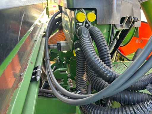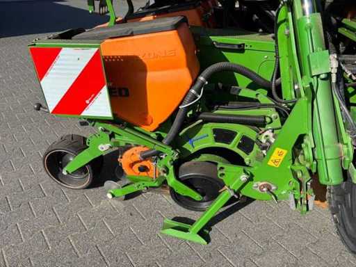 Equipped with: working width (m) 5.40 – 6.40, possible row distances (cm) 70, 75, seed distance 3.1 cm to 86.9 cm, depending on the seeding disc used, drive of the fan via the PTO shaft with freewheel clutch, PTO input speed 540 min-1, 710 min-1 or 1,000 min-1, 1100Ltr, Amatron 3 computer, GPS-Switch, GPS-Track and GPS-Maps, Iso-bus interface.