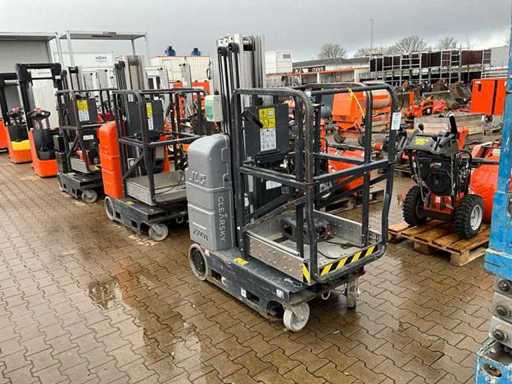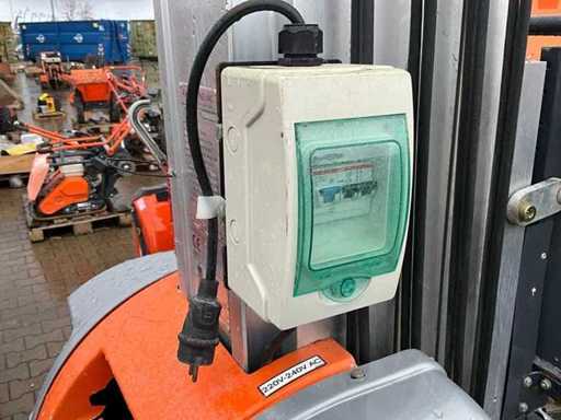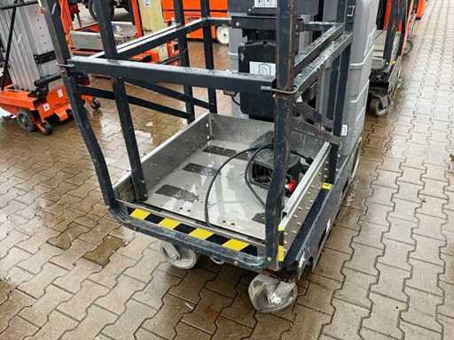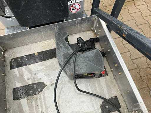 mobile; steel/aluminum; maximum platform floor height 5940 mm; cage control; 230 Volt power connection platform; extendable platform size 1200x650 mm; built-in battery charger; 24 Volts; 230 Volts; not working;