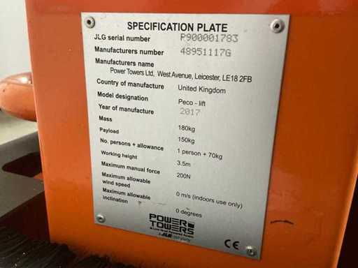 2017 JLG Ecolift 50 Passenger Lift 3,5m manual