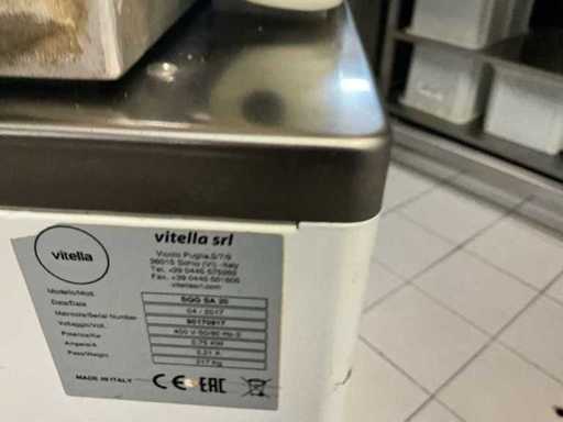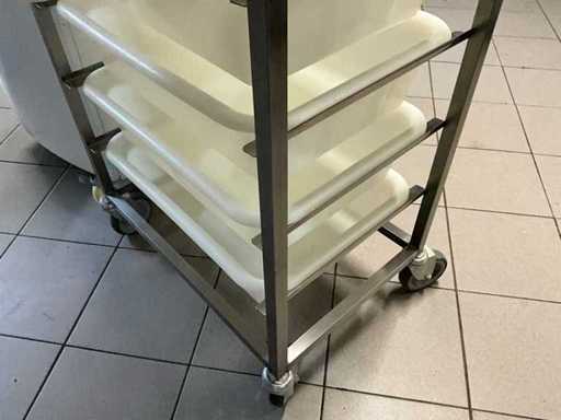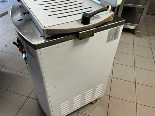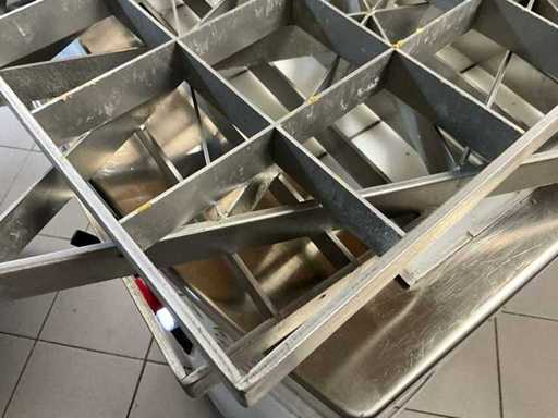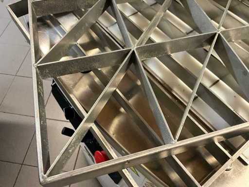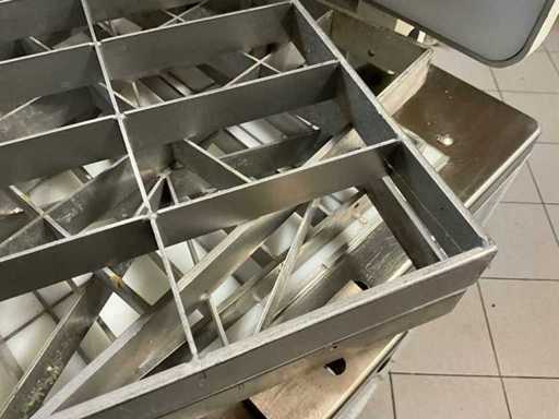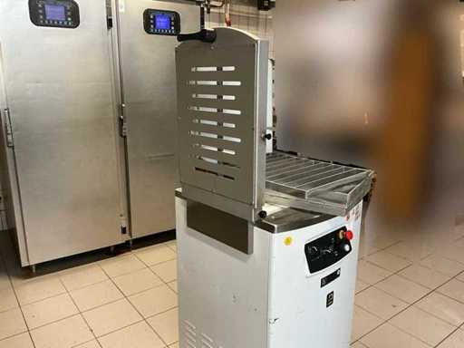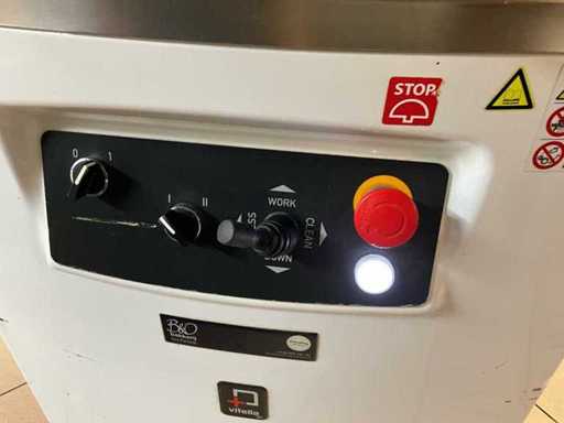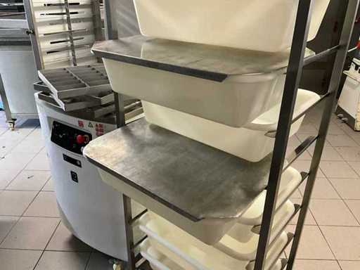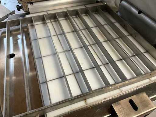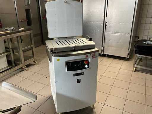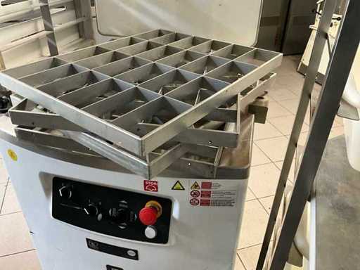 Professional Vitella dough divider (2017) in neat condition, delivered complete with stainless steel mobile cart + several plastic dough trays including lids. Ideal for bakeries that want to portion efficiently and want to organize direct processing/storage. The machine accurately divides dough into different shapes thanks to interchangeable grids. Perfect for: Ciabatta, Baguettes, Sourdough rolls, Square / rectangular portions, Triangles / special shapes 👉 Includes practical baking trolley to collect dough pieces hygienically directly or let them rise - Design & functions: ✔️ Dividing dough + pressing in one operation ✔️ Multi-position control panel (work / clean / press) ✔️ Emergency stop available ✔️ Stainless steel worktop and parts ✔️ Mobile (on wheels) ✔️ Includes multiple distribution grids