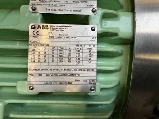 Motor has never been used and are new. They have been stored in a warehouse. Some small signs of wear from storage are possible. Only 1 motor Elektromotor ABB Process Performance Cast iron IEC280 1500T (4-polig) 90kW 400/690V B3T IM1001 IE3 C5M COATING RAL6019