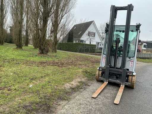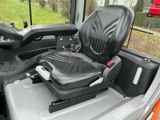 Equipped with: bluespot, lighting, work lighting, horn, windshield wiper front and rear, fire extinguisher, heating, rearview mirror, battery charger, hydraulic connection, battery year 2019