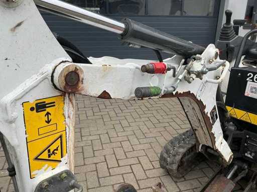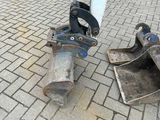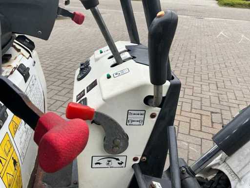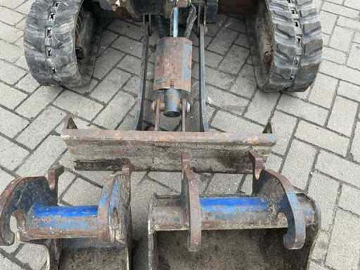 Please note; Decals are removed at sale, Ditch bucket 800mm, backhoe 400mm, banana bucket 220mm, hydraulic switch, 3rd function, work lighting, blade 675mm, adjustable undercarriage 700/1000mm, folding bracket