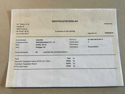 2019 KÖGEL SN 24 Curtainsider semi-trailer