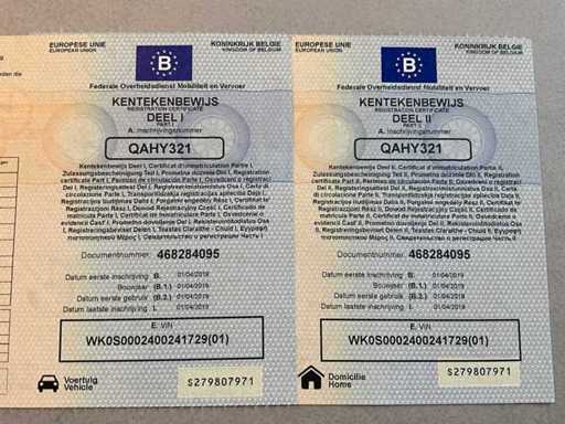 Documents present: Registration certificate part I, Registration certificate part II, Identification report, Certificate of conformity, Inspection certificate, TÜV Nord certificate.