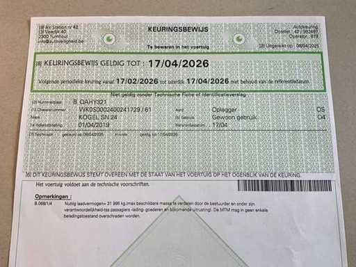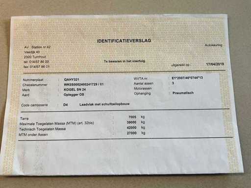 2019 KÖGEL SN 24 Curtainsider semi-trailer