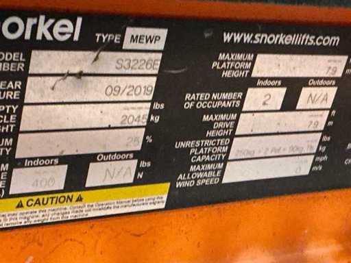2019 Snorkel S3226E Aerial Work Platform