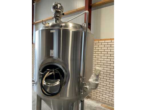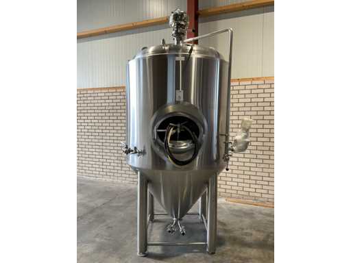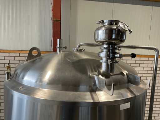 Net Volume: 1650 liters. Transport size: 1600x1450x2600mm. Outerliner: SS 304, Innerliner: SS 316, All in Tri-Clamp. Equipped with: Butterfly valves, test valve, CIP Ball, Hop Port, Cooling Jacket with GEKA connection, new waterlock, passivated. Includes: (2x) spare rubbers manhole.