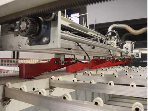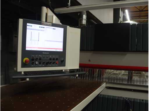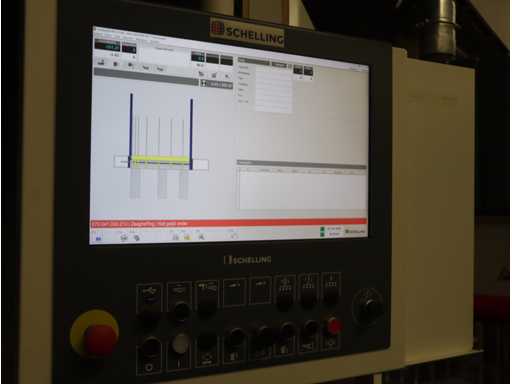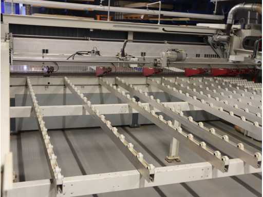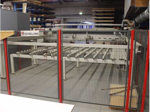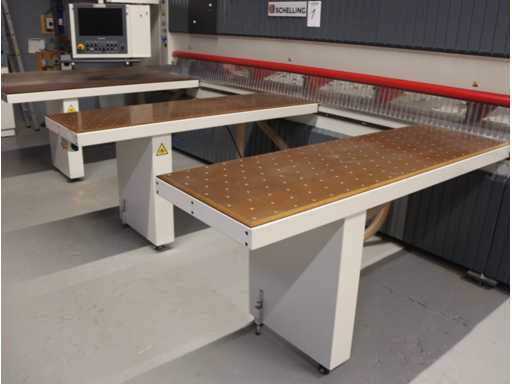 equipped with (3x) supply of trolley; (2x) mobile; Afm. approx. 2100 x 700 mm; (7x) pneumatic gripper; scorer Ø 200 mm; digital control panel; Output setup and security fencing, with various accessories in and with wooden cabinet