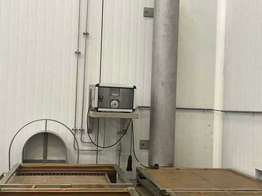 Electronic mixer for 2 gases with motor-controlled mixing valve technology, on stainless steel wall bracket (by means of bolts in wall), complete with pressure vessel of approximately 155 cm high with 22 cm diameter, mounted on the wall.