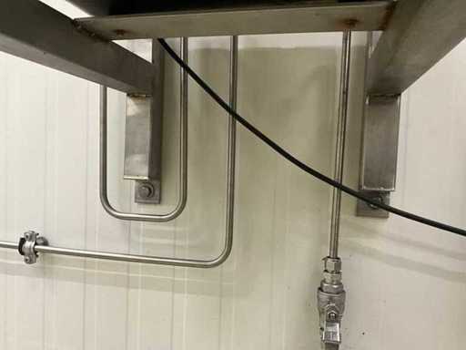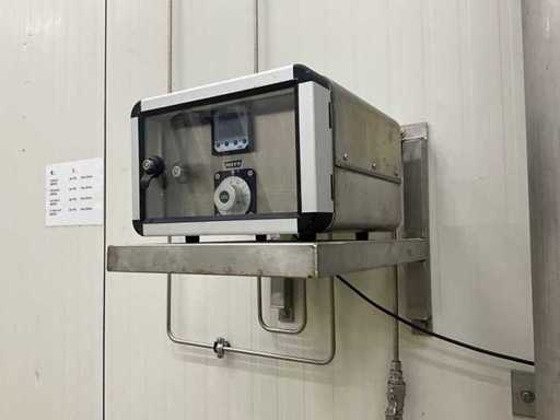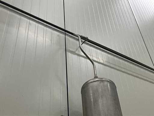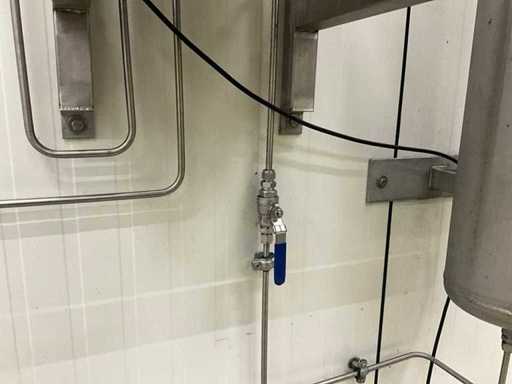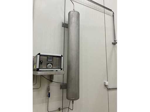 Electronic mixer for 2 gases with motor-controlled mixing valve technology, on stainless steel wall bracket (by means of bolts in wall), complete with pressure vessel of approximately 155 cm high with 22 cm diameter, mounted on the wall.