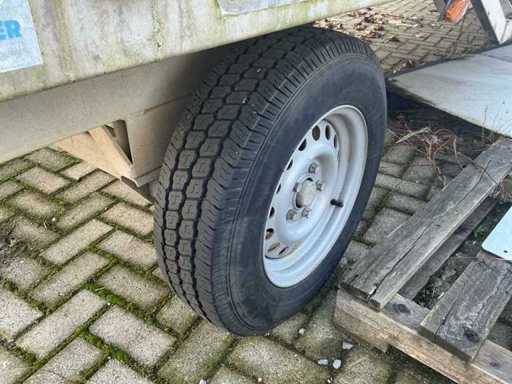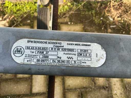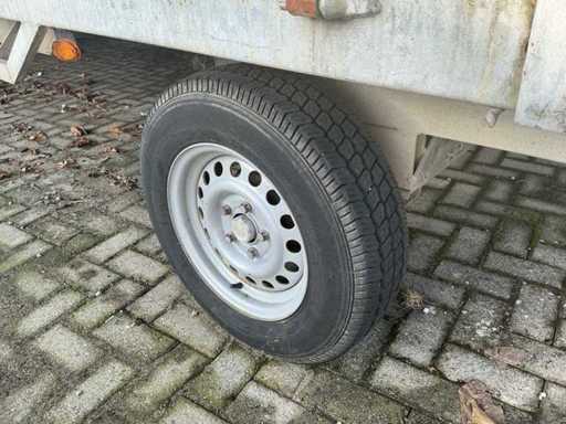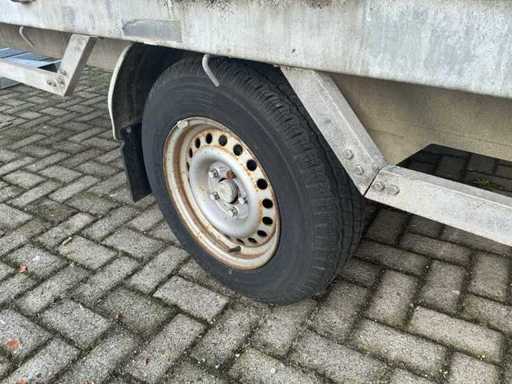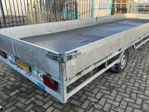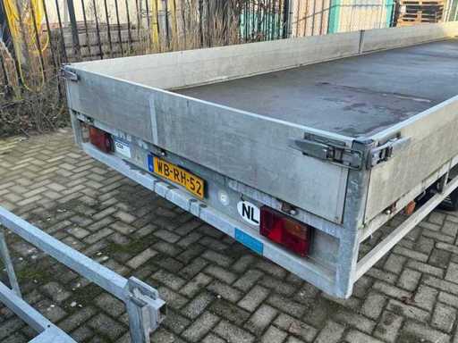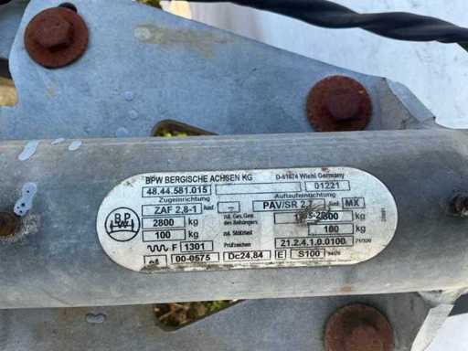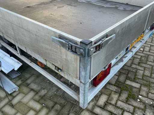 Equipped with: handbrake, 13 pin plug, overrun brake, K50 trailer coupling, removable rack front, lighting, width marking, 5 fold-down side panels, all around hooks for load securing, jockey wheel, cargo box length 8070mm.