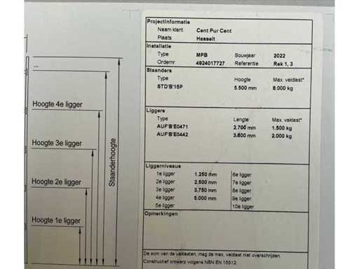 consisting of 10 uprights 110xH550cm, 12 beams 360xH12cm, 30 beams 270xH11cm and 10 leg protectors, including 1 back wall