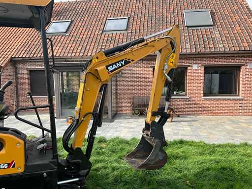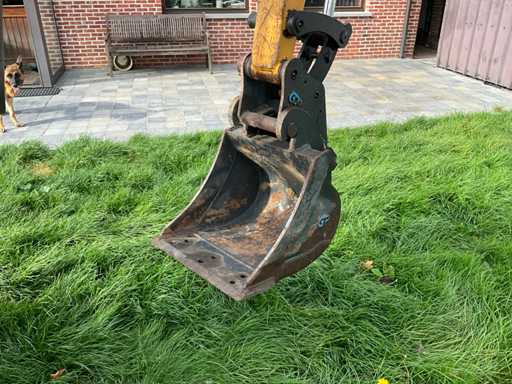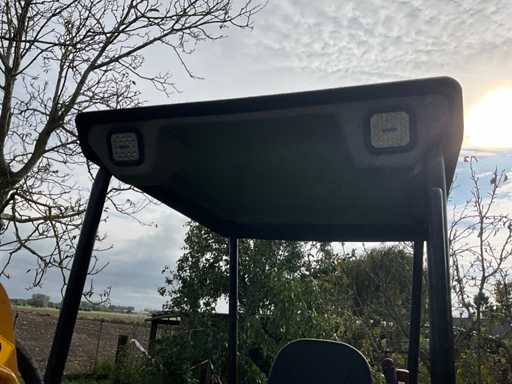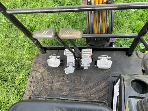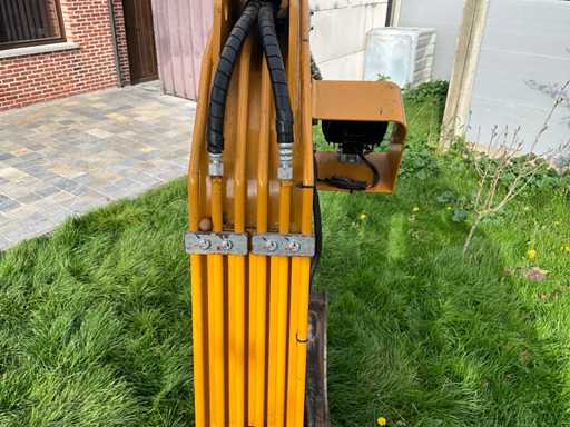 Equipped with adjustable tracks in width, a rotatable arm, an extra hydraulic line.
