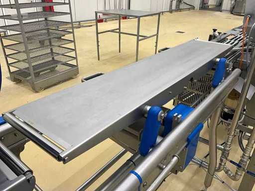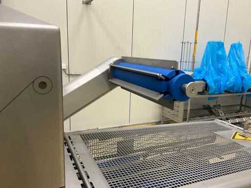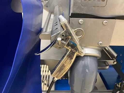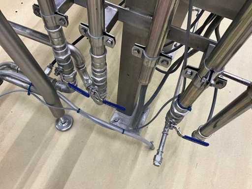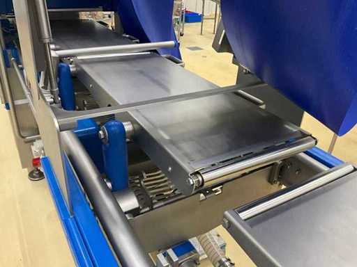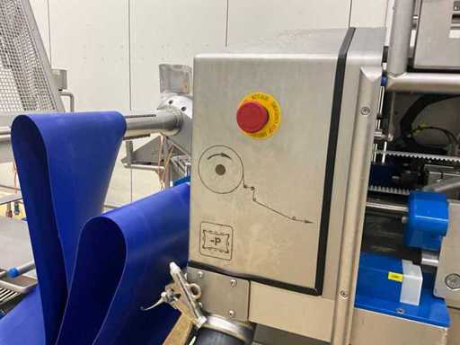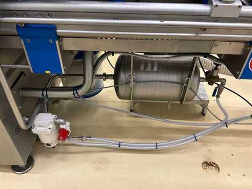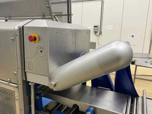 Equipped with inlet and run-out belt, film unwinding, gas buffer tank, line system, sealing station, residual film rewinding, stopper area, and control display.