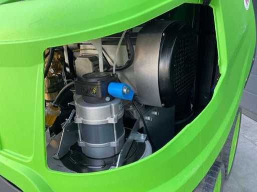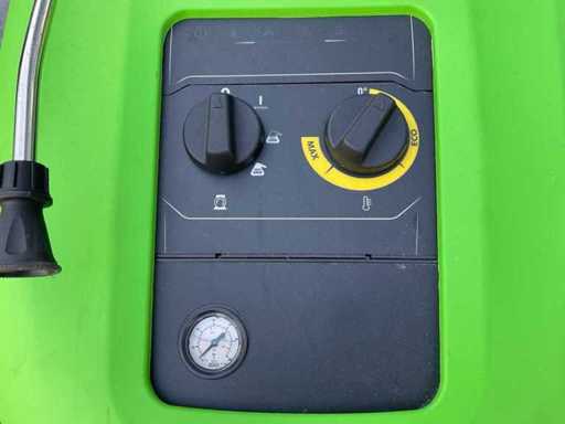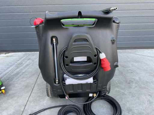 loose reel, painted steel frame, shock-resistant protective cover, 4 large wheels, folding front cover for easy access to components, ECO mode (60°C, approx. 25% less fuel consumption and emissions), control panel with signal and control lights or digital display (PLUS version), stepless pressure control, fuel tank 25 liters, storage space for gun/lance/hose/nozzles, DIAD injection system for detergent and water softener, stainless steel burner boiler 70 kW, 4-pole asynchronous air-cooled electric motor with thermal protection (S1, maintenance-free), fuel level indication, radial crankshaft pump with brass pump head and ceramic plungers, pressure gauge, adjustable working pressure, water softening tank 2 liters, DTS delayed falling stop system, IASF automatic shutdown after 20 min standstill, FLC fuel level control, MLC micro-leakage control, DRP dry-run protection, NCC nozzle clogging check, HBLS LED signals, MCL maintenance control lamp, FPS non-return valve, IBD delayed burner ignition, WHC hour meter, operating pressure up to approx. 180–200 bar, water flow rate up to approx. 800 l/h, max. Water temperature approx. 140 °C (steam function), output approx. 5–6.4 kW, voltage 3x 400 V