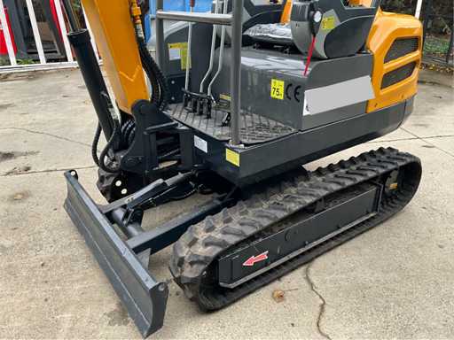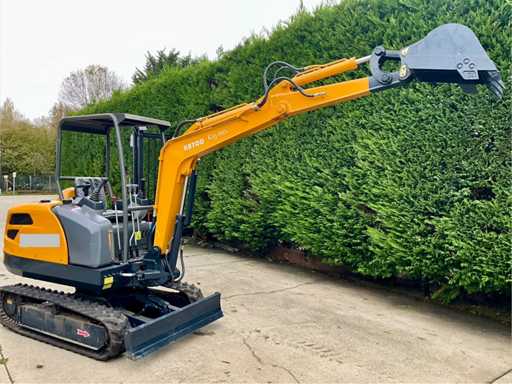 Mint condition crawler excavator of 2,456 kg with diesel engine (18.8 kW / 25 hp). Only 47 operating hours. Equipped with CE approval, joystick control, hydraulic dozer blade and bucket with teeth. Some minor paint damage at the rear, otherwise like new. Can be used immediately for landscaping, earthworks or rental. - Equipment: Dual joystick controls Hydraulic auxiliary function (for grapple/hammer) Adjustable Dozer Blade Note: slight paint damage at the rear (see photo) CE Certificate 12V socket Excavator bucket with tines included Key and manual available - Condition: Condition: unused, only test hours (47 h) Paint: in mint condition with minor paint damage at the rear (see photo) Tracks: in mint condition Hydraulics: dry and leak-proof on visual inspection Seat: still in original protective film