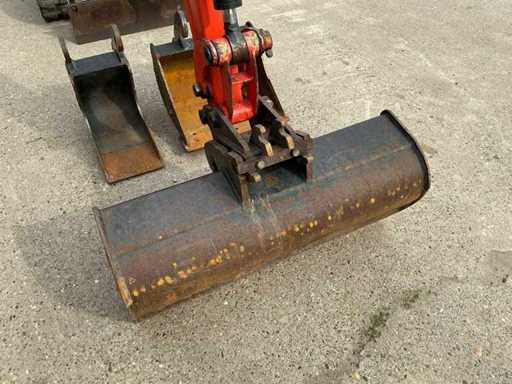 Featured; mechanical quick coupler, bucket 800mm, bucket 400mm, bucket 200mm, aux.connection along boom, ROPS bracket, CE marking, joystick control, max digging depth 1800(mm), Kubota 7.6 kW E-TVCS motor, 2-travel speeds, adjustable tracks 750-990 mm, internal rotation, max reach 3330mm, yield extra function 21 l/min @ 175 kgf/cm2, servo control, hoses concealed by the boom, LED work light, folding roll bar, fully opening hood, programmed key(ANTI-THEFT SYSTEM),