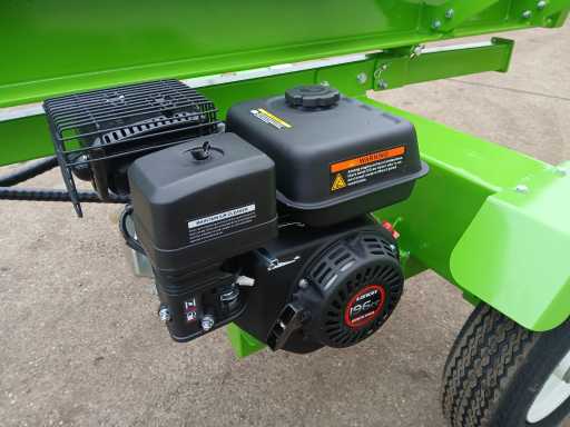 Petrol engine Loncin. Double hydraulic Bucher pump drive, 2-hand operation, splitting cross included, 22ton, splitting length 65 cm. Can be used horizontally and vertically. Slow transport, Max 40km/h. Self-assembly, delivered in packaging wooden crate (see photo)
