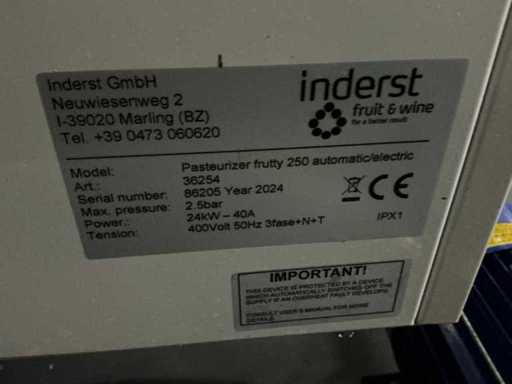 Consisting of 1x Inderst Frutty 250 automatic pasteurizer machine (1200x800x1400mmj, 1x stainless steel filling device (650x550x1000mm.) and 1x scale
